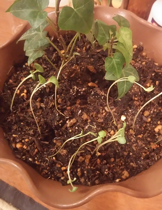 アイビーと貝割れの寄植え🌱