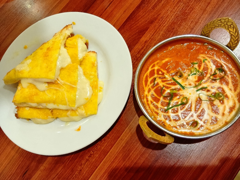 キーマカレーとガーリックチーズナンをいただいて、ポカポカになりました。というか汗だくになりました💦